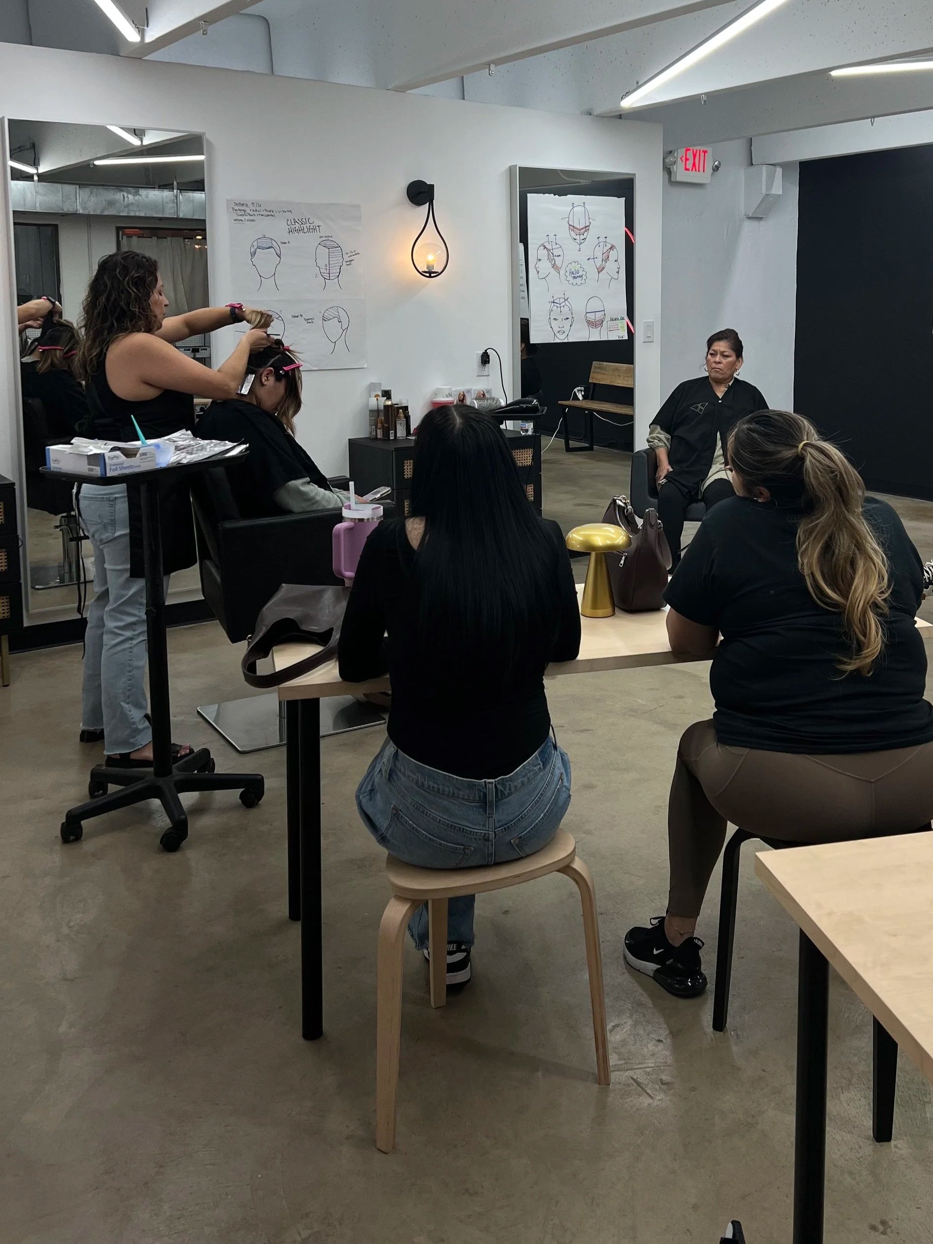Our Academy is Conveniently located inside our 1700sq ft Salon Space. Equipped with a classroom for Interactive workshops, 6 station demonstration and practice area, as well as the salon floor for our Technical Theory Days.